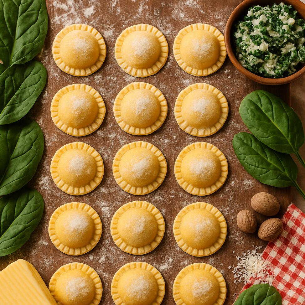 Estos sorrentinos combinan la suavidad de la ricotta fresca con espinaca salteada y un toque de nuez moscada, envueltos en una masa delicada hecha a mano.