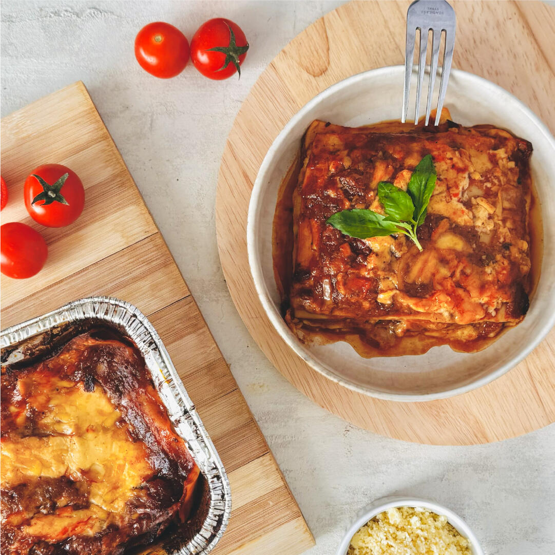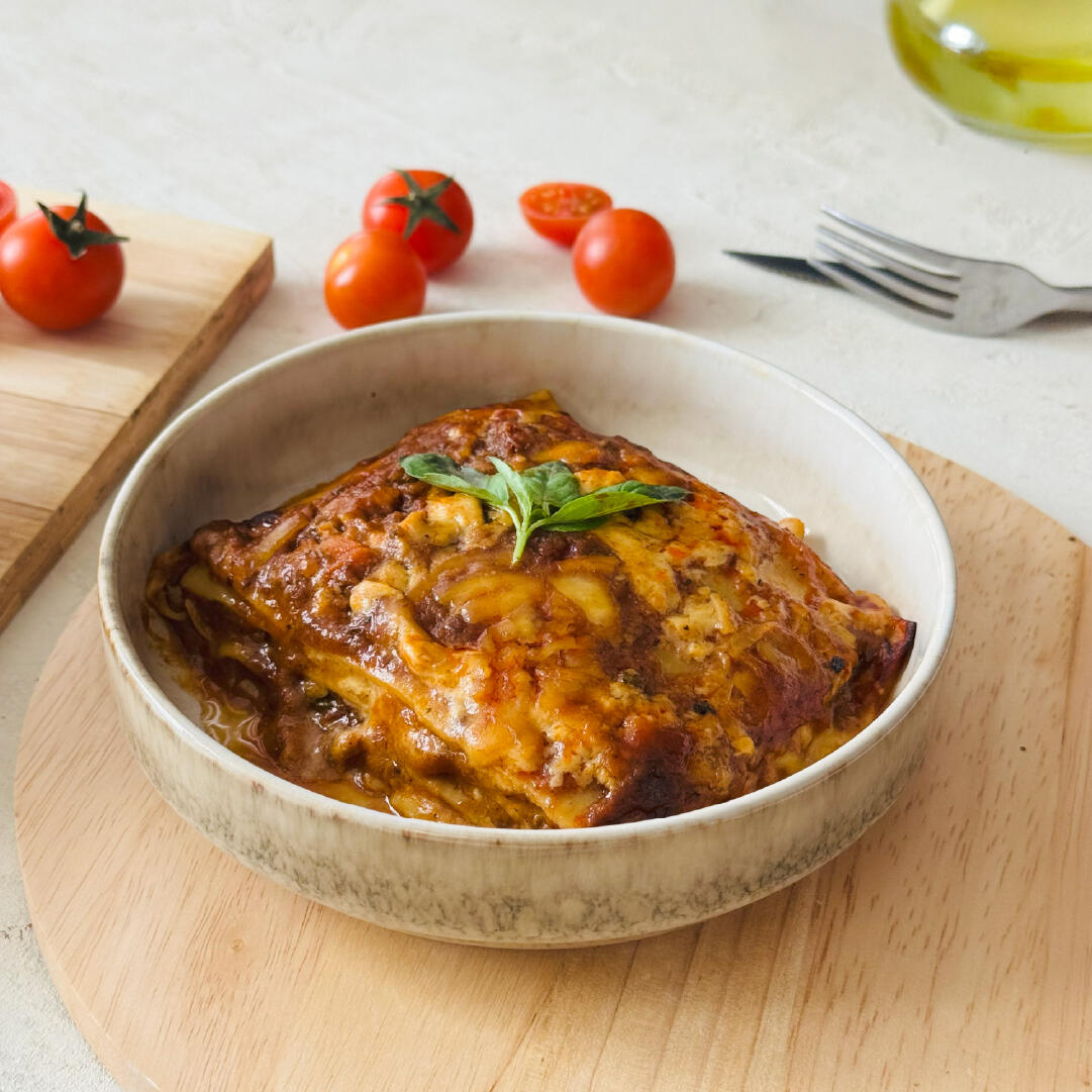 Receta clásica con capas de pasta casera, boloñesa y queso fundido. Pídela fresca o congelada y sellada al vacío.